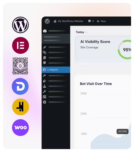 Quickly add LLmagnet to your WordPress site and start capturing real-time AI bot activity – no setup or code required.